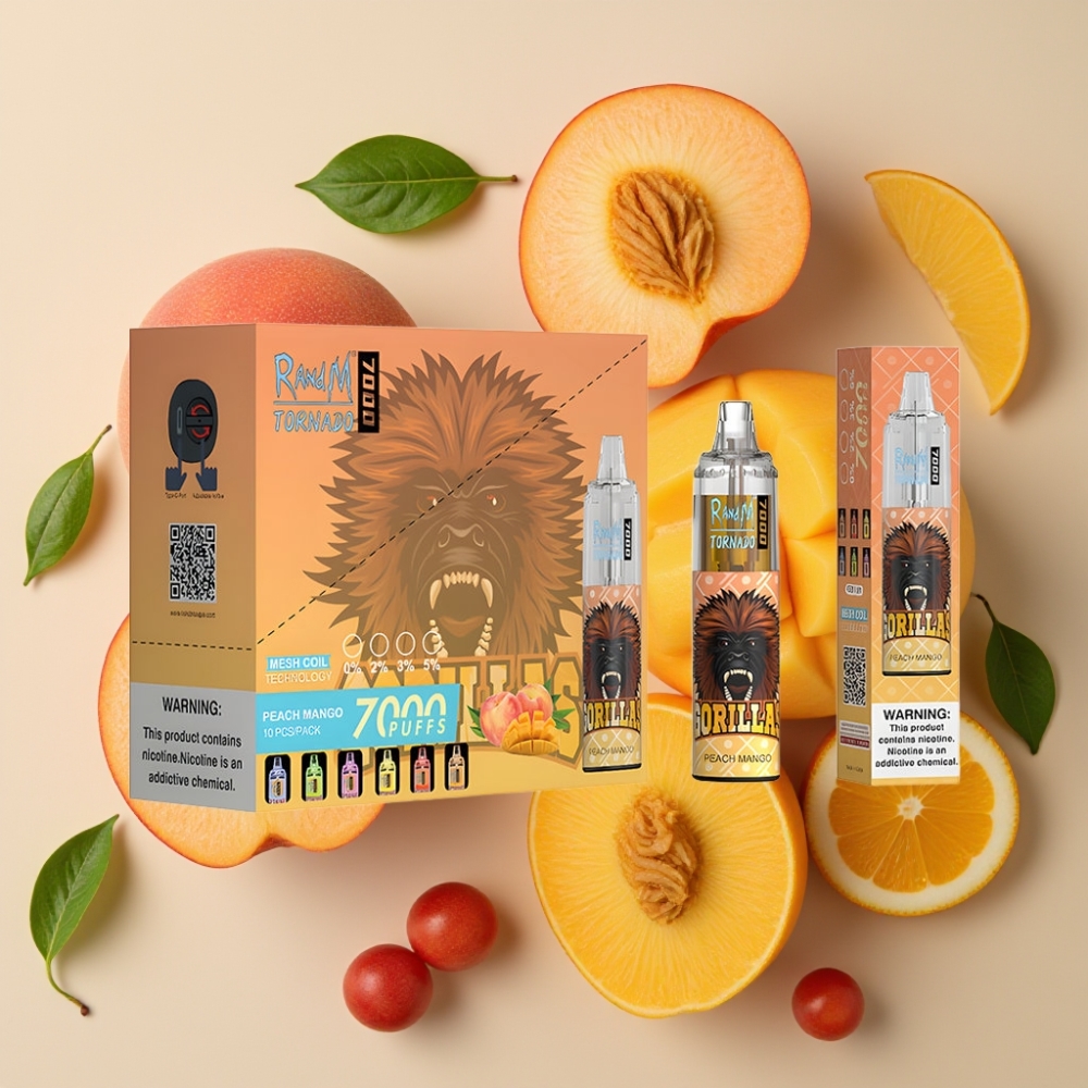 Fumot Tornado 7000 Puffs 14ML 850MAH Pêche Mangue Mesh Type-C RGB Air-Adjustable