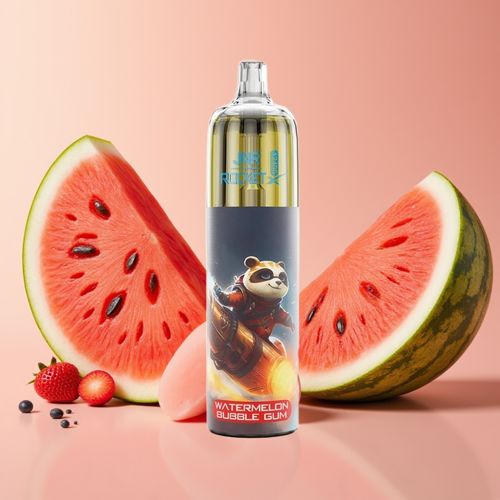 JNR Rocket-X 12400 Puffs Airflow Réglable, RGB, 1.2ohm, 850mAh, Bubble Gum Pastèque