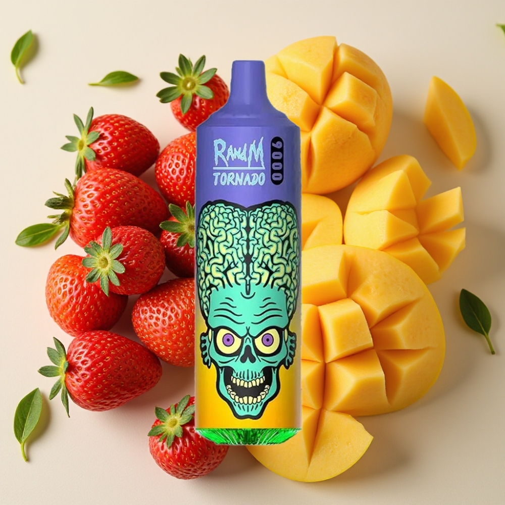 RandM Tornado 9000 Puffs 850 mAh 18 mL Mesh Coil RGB Fraise Mangue